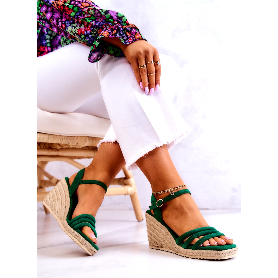 FJ1 FJ1 Semišové zelené sandály na klínu Louisiana zelená