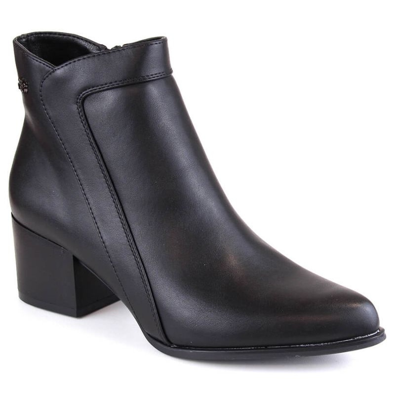 Klasický, černý model Sergio Leone v SK420B je kombinací ženského řezu a praktického oteplování. Horní vyrobená z vysoce kvalitní ekologické kůže, jemné kožešiny uvnitř a stabilní pata-5,5 cm vysoká pata zajišťuje pohodlí a styl během chladnějších dnů. Zipper usnadňuje oblékání a štíhlý nos přidává eleganci.