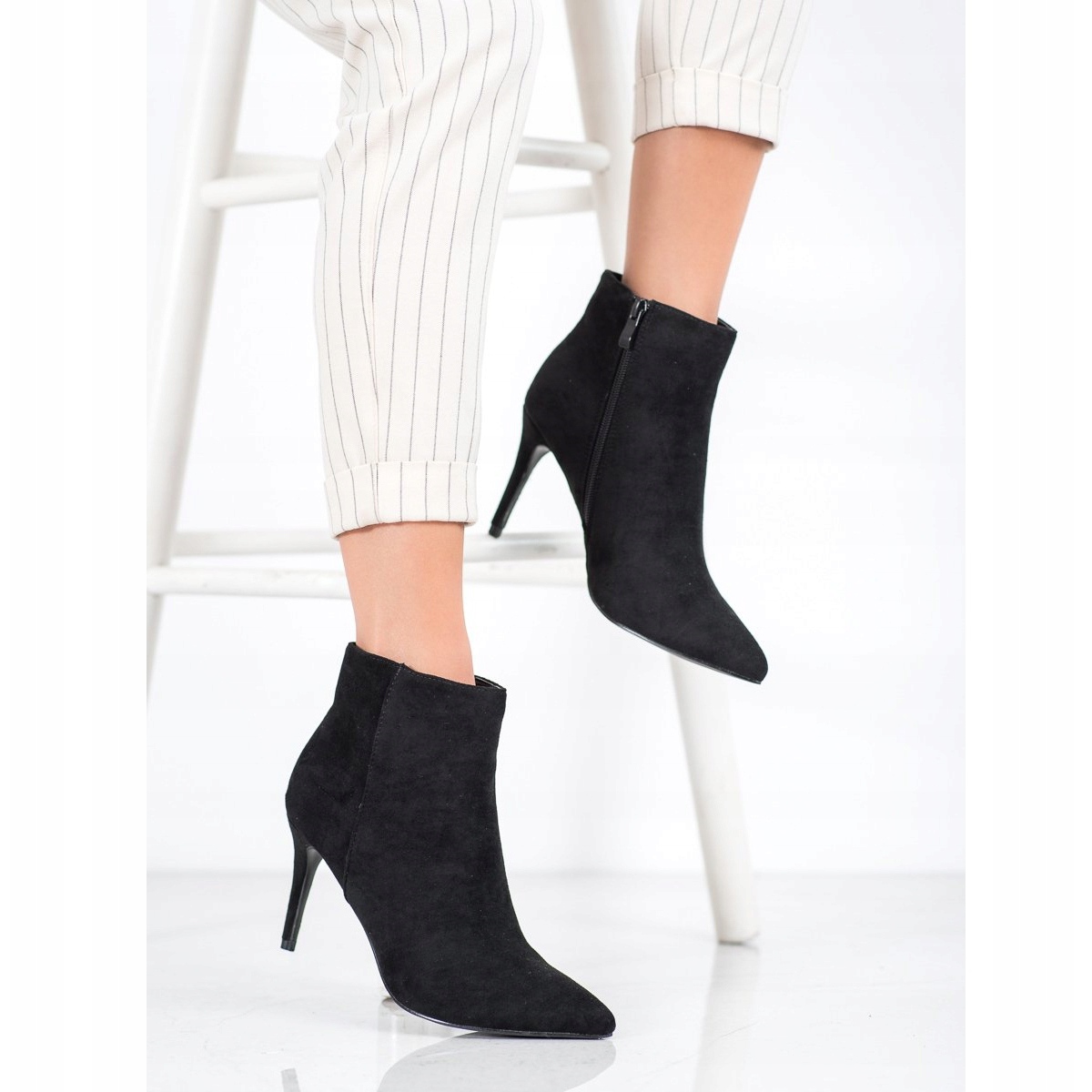 Objevte eleganci a smyslnost se sexy semišovými kotníčkovými botami od Sweet Shoes! Tyto jedinečné dámské boty v černé barvě jsou perfektní volbou pro zvláštní příležitosti, večery nebo oslavy. Vybaveny podpatkem v podobě tenkého jehlového podpatku o výšce cca 8,5 cm dokonale zdůrazňují tvar chodidla, dodávají ženský šarm a eleganci.