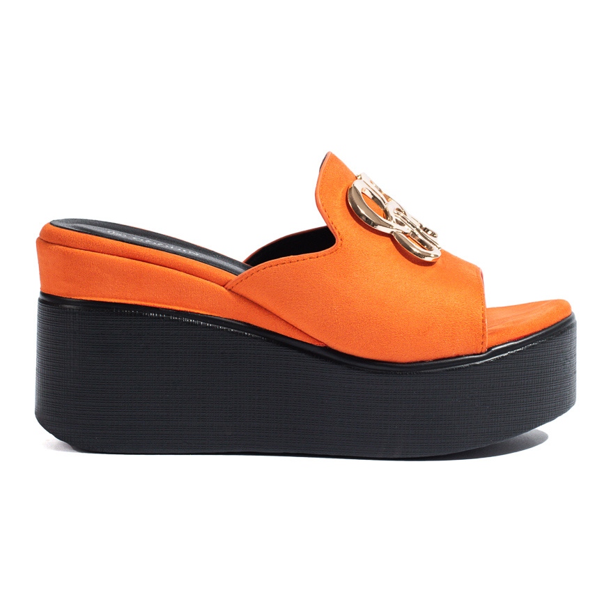 SHELOVET Shelovet oranžové semišové pantofle na klínku oranžový