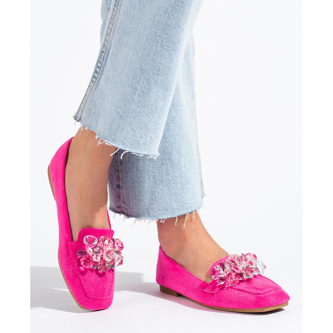 SHELOVET Shelovet růžové semišové mokasíny s kamínky růžový