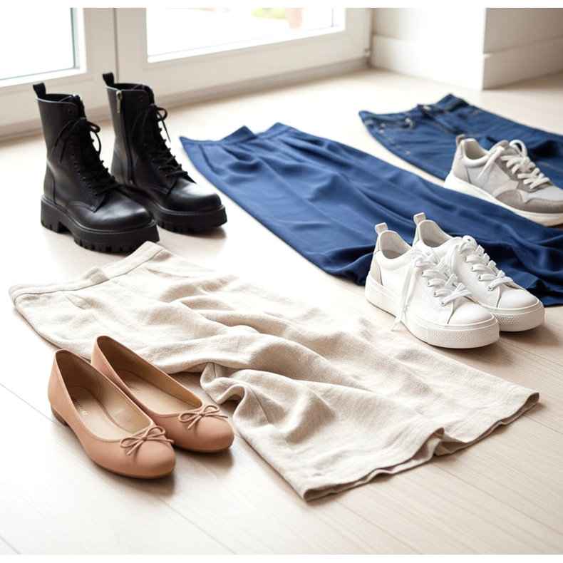 Pokud chcete nosit široké nohavice s plochou podrážkou, volte zkrácené modely – končící těsně nad kotníkem nebo rovnou ke kotníku. Vyhnete se tak efektu „přebití“ materiálem a zachováte světlejší proporce. Tipo culottes a zkrácené široké kalhoty jsou navrženy k nošení k plochým a mokasínům - tato kombinace vypadá mladě a sportovně a zároveň nese nádech třídy.