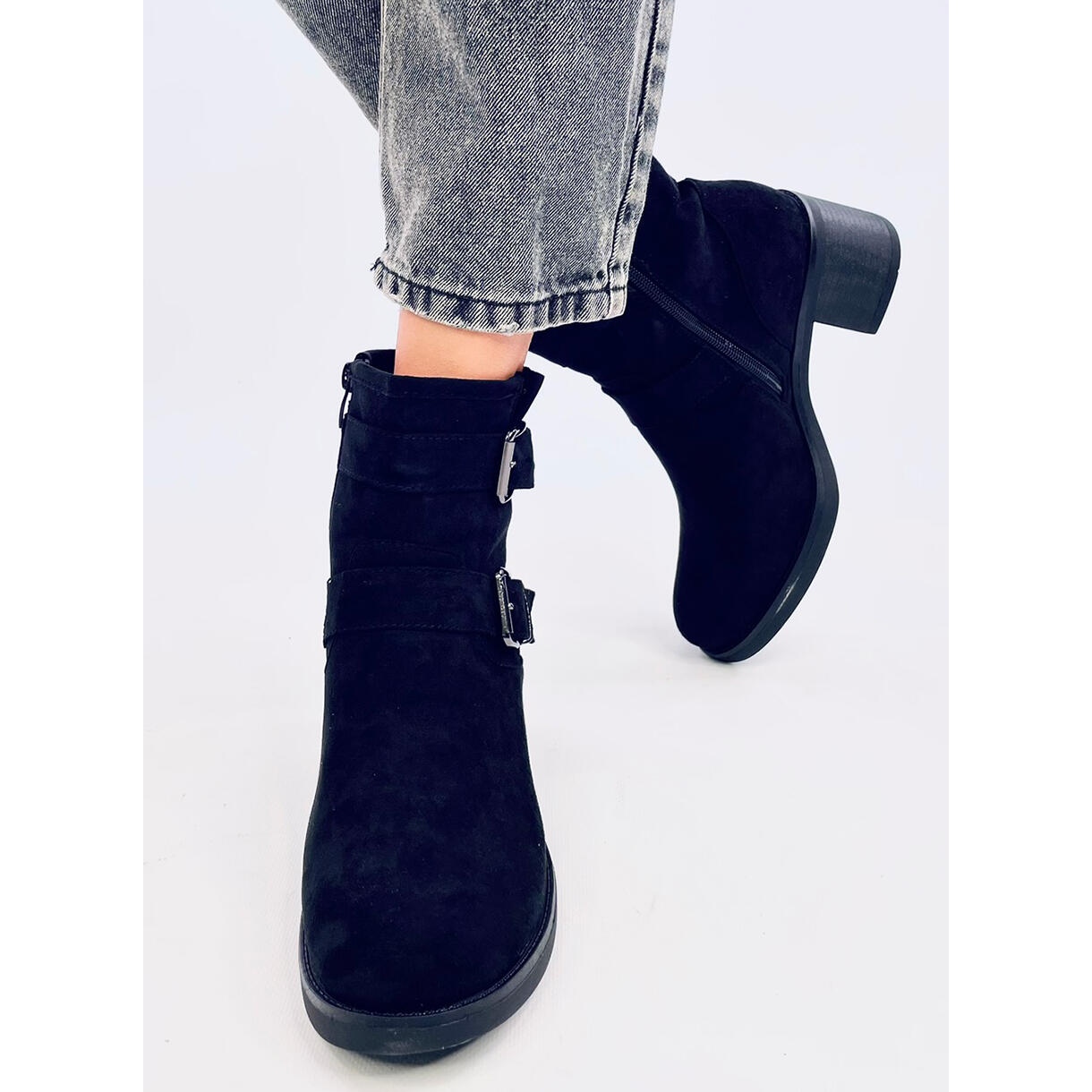 Stylové černé černé černé boty jsou perfektní kombinací pohodlí a módního vzhledu. Vyrobeno z příjemného na dotykové ekologické semiše, s izolovaným interiérem polstrovaným jemnou kožešinou, zajistí teplo a pohodlí v chladnějších dnech. Stabilní, široká košíková pata s výškou 6,5 cm přidává jistotu a praktický spojovací zip na boku usnadňuje oblékání. Postava je dána efektivními sponami, které zdůrazňují moderní řez.