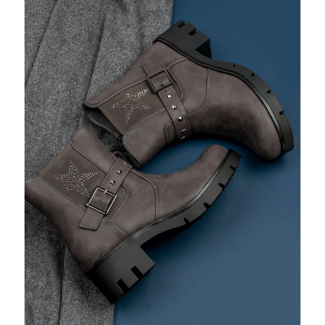 Boty vyrobené z vysoce kvalitní ekologické kůže poskytují nejen módní vzhled, ale také pohodlí při nošení. Izolace z nich dělá perfektní řešení pro chladné dny. Ozdobné přezky, kamínky a cvočky jim dodávají kouzlo a zdůrazňují rockový charakter tohoto modelu.