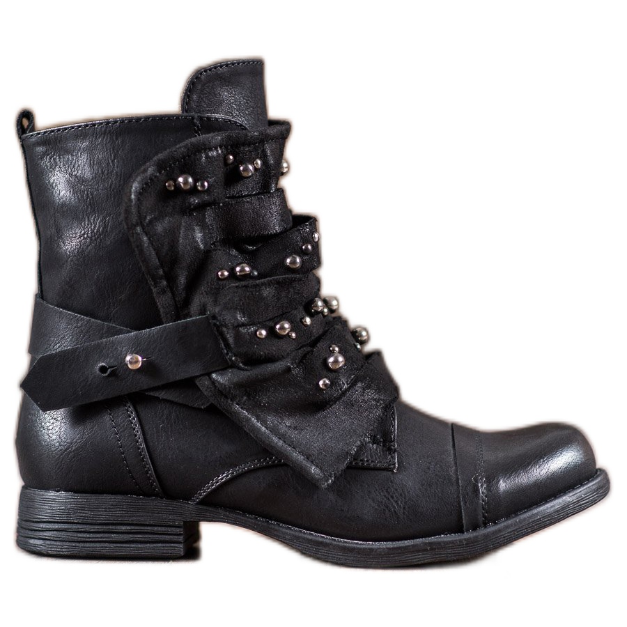 **GISICODE Rockové boty s perlami – černé dámské boty**