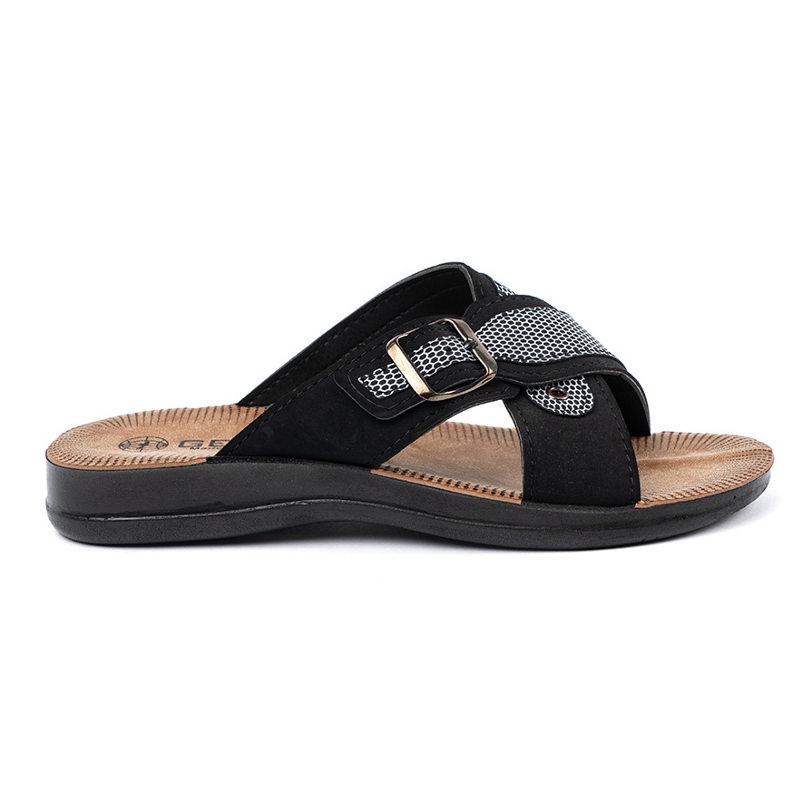 Jedinou z odolného plastu zaručuje stabilitu a pohodlí při chůzi a vložka ekologické kůže dále zvyšuje pohodlí použití. Tyto žabky jsou k dispozici v klasické černé barvě, kterou lze snadno kombinovat s různými stylizacemi.