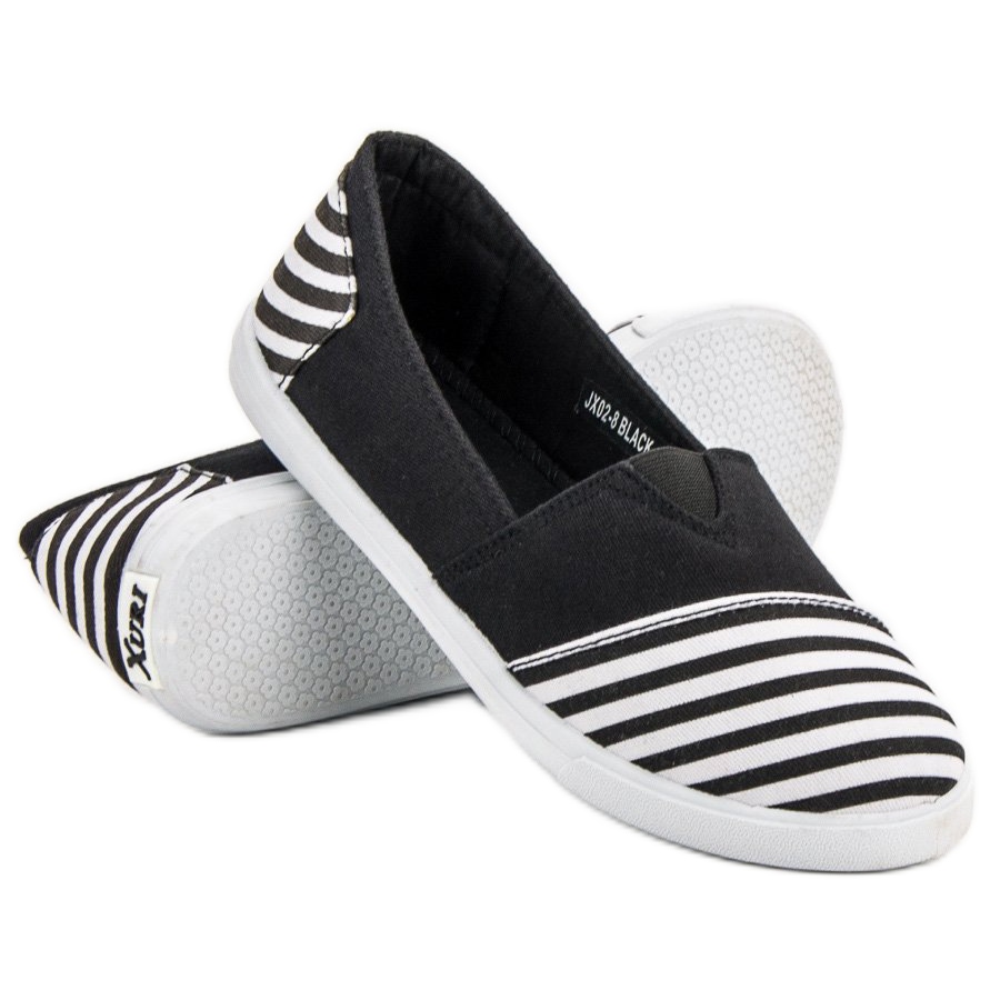 Jejich charakteristický design vyniká zajímavou kombinací jednotné černé s černobílými pruhy umístěnými na špičce a kolem paty, díky čemuž jsou módní a originální. Nazouvací uzávěr zajišťuje snadné a rychlé nazouvání a vyzouvání a měkká pata zajišťuje pohodlí při nošení.