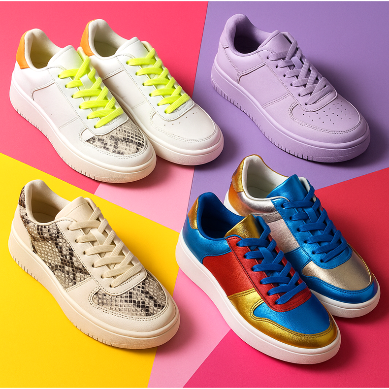 Bílé tenisky jsou klasický, ale 2025 je rok barevné odvahy! Neonové akcenty oživují tlumené styly. Pastelové odstíny se dokonale mísí s jarními šaty. Tisk zvířat je hit - zejména jemné vzory hadů nebo leopard. Blokování barev vám umožňuje vytvářet odvážné kombinace. Kovové povrchové úpravy přidávají futuristický charakter. Pamatujte na princip: čím barevnější boty, tím klidnější zbytek oblečení. Ale pokud chcete experimentovat, porušte pravidla!