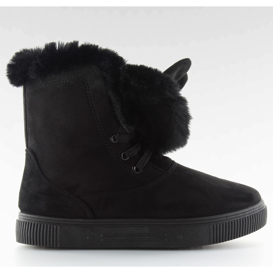 Černé sněhule DD38 s ušima - okouzlující, teplé a praktické boty, které dodají charakter zimním stylizacím. Malé "uši" na jazyku jim dodávají originální, zábavný vzhled - můžete je nosit dvěma způsoby: s vyvaleným jazykem, když jsou uši vidět, nebo boty zašněrovat a schovat, čímž získáte klasický tlumený styl.
