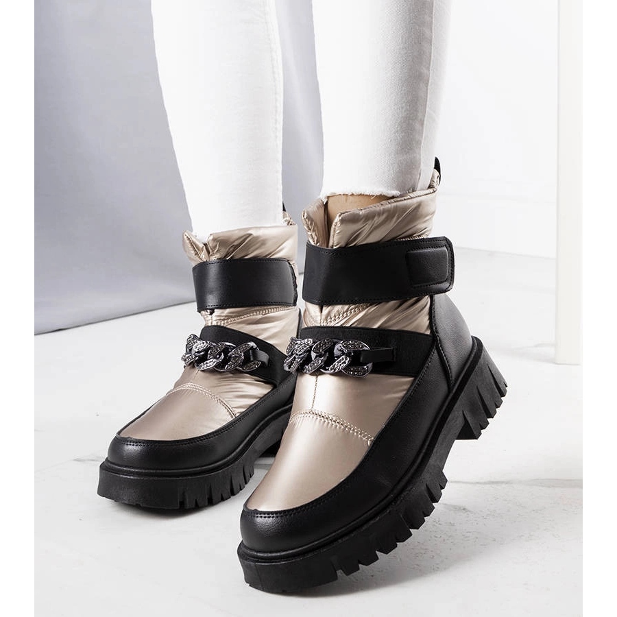 Zlaté sněhové boty s řetězcem Efraim - černá
