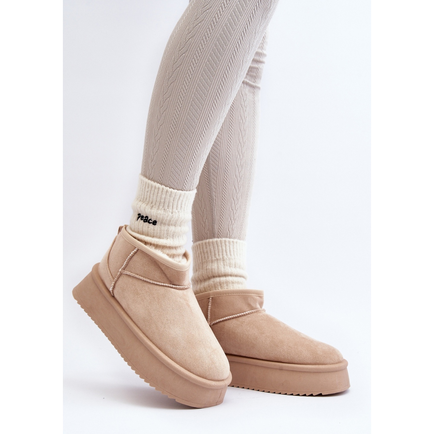 Interiér bot je lemován hustou srstí, což dále zvyšuje jejich pohodlí a útulnost. Tento model je ideální pro různé stylizace - od denních oblečení po elegantnější sady. Béžová barva způsobuje, že Snowfish se snadno přizpůsobí různým oblečením.