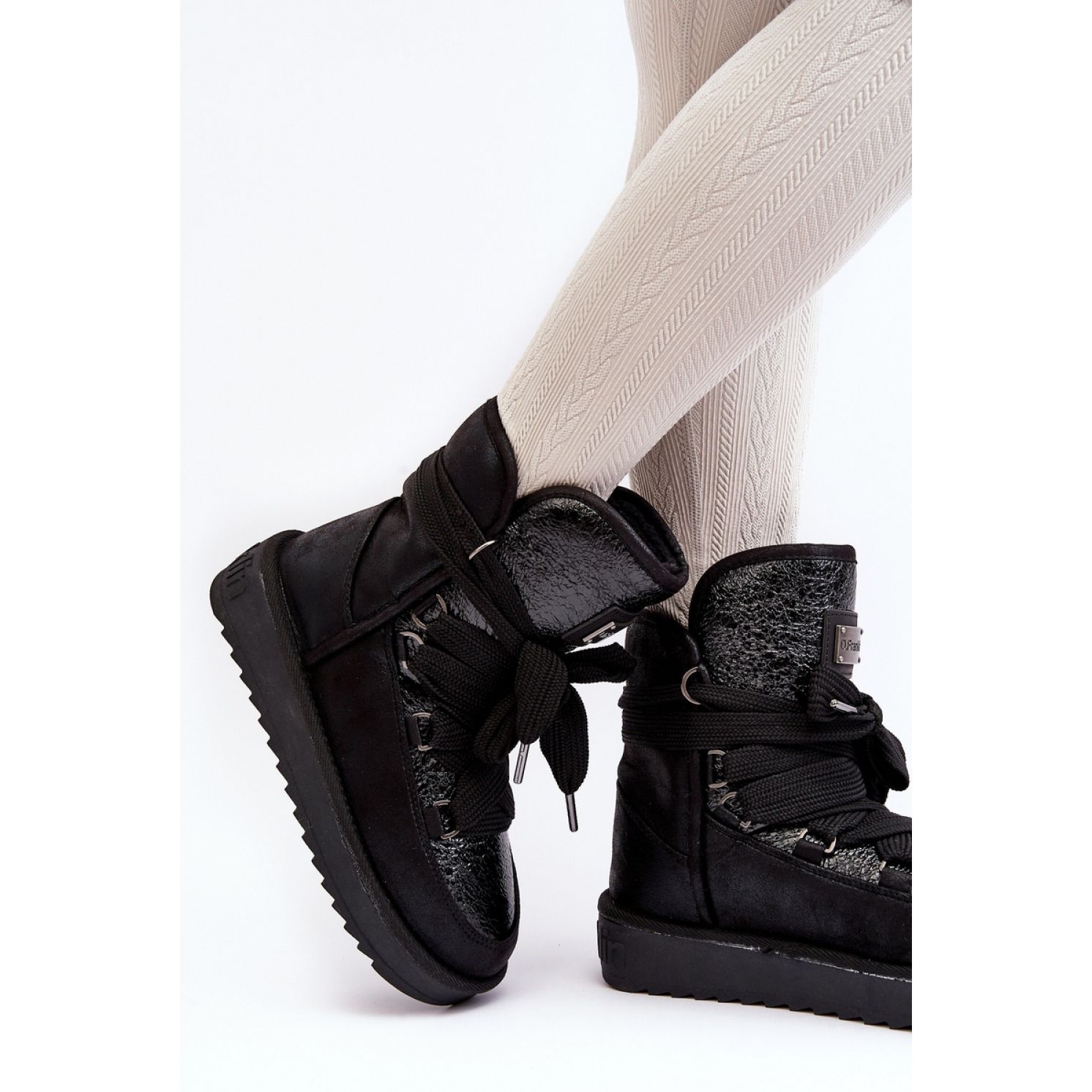 Snow Boots DFSH370006 Black je perfektní volbou pro ženy, které si cení stylu i pohodlí. Tyto černé sněhové boty, vyrobené z vysoce kvalitní tkaniny mikrovlákna, přitahují pozornost nejen s jejich moderním designem, ale také s důrazem na detail. Dekorativní, třpytivý prvek na přední straně bot, přidává k nim přitažlivost a nutí je, aby se nosili pro různé příležitosti.