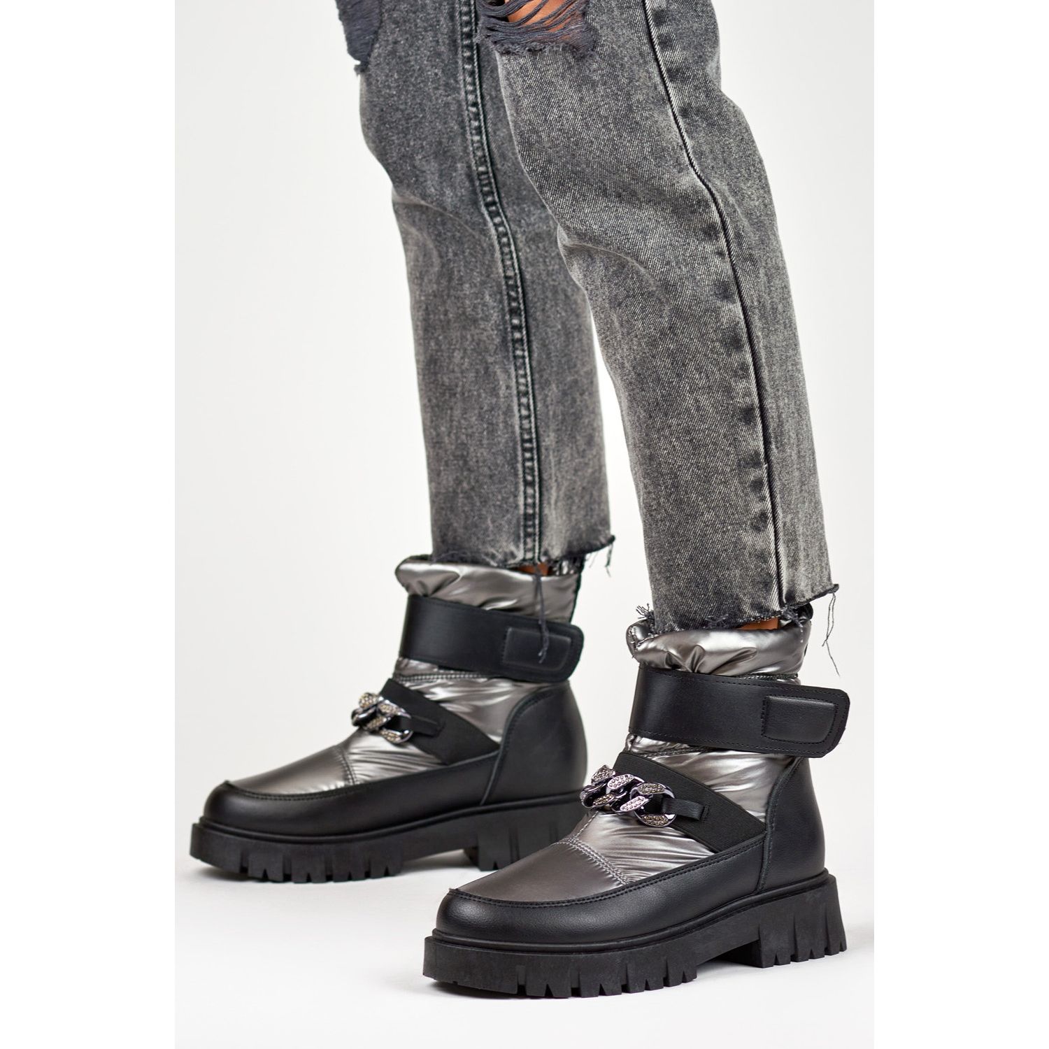 Snow Boots Model JH-5SI ve stříbře je perfektní volbou pro zimní dny a kombinovat styl s funkčností. Tyto boty jsou vyrobeny z textilního svršku, které účinně chrání před chladem a vlhkostí, což je činí nenahraditelnými v obtížných povětrnostních podmínkách. Interiér polstrovaný měkkou ekologickou kožešinou poskytuje teplo a pohodlí a další kožešinu v vložce zvyšuje pocit měkkosti.