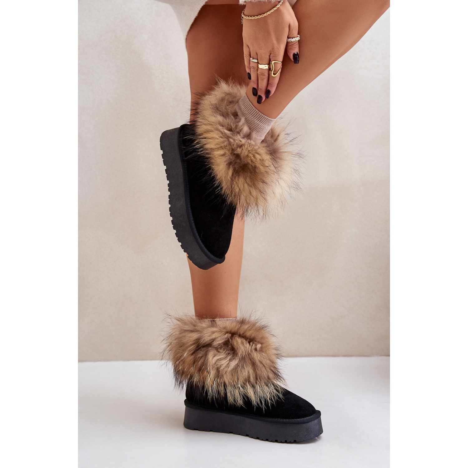 Horní část horní části je zdobena načechranou kožešinou, která přidává nejen kouzlo, ale také další teplo, což z nich činí nenahraditelný prvek zimního šatníku. Sněhové boty jsou zabudovány na stabilní platformu s výškou 3,5 cm, což je činí pohodlnými i během delších procházek.