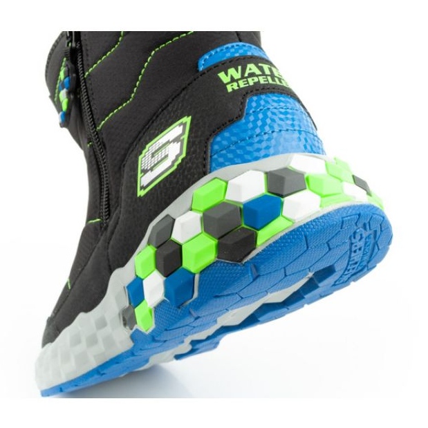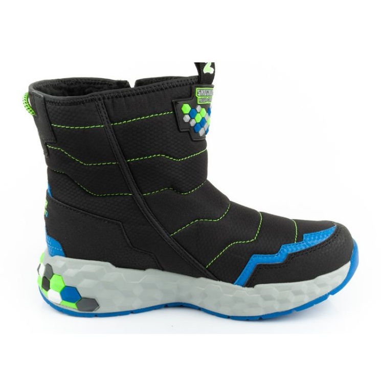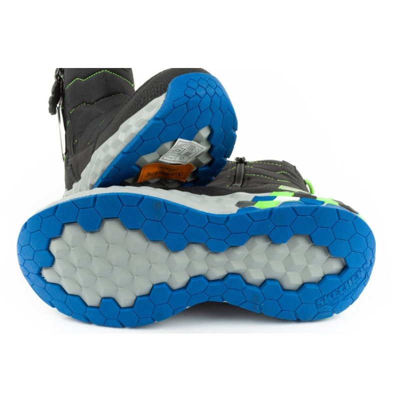 Snowrows Skechers JR 402216L/BBLM - černá, izolovaná a vodotěsná, vytvořená pro aktivní děti. Model ve stylu mega-craft kombinuje moderní vzhled s funkčností: horní část vysoce kvalitních syntetických materiálů s nepromokavými vlastnostmi, měkká umělá izolace kožešin a polštářenou stélí zajišťuje pohodlí a teplo během zimních her.