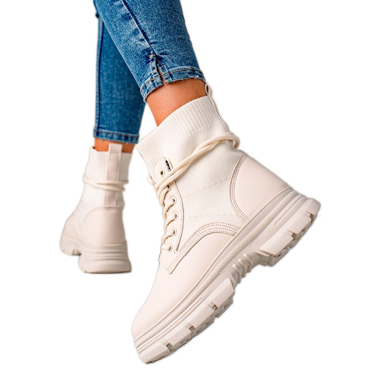 Podrobnosti: TRENDI Šněrovací béžové kozačky béžový