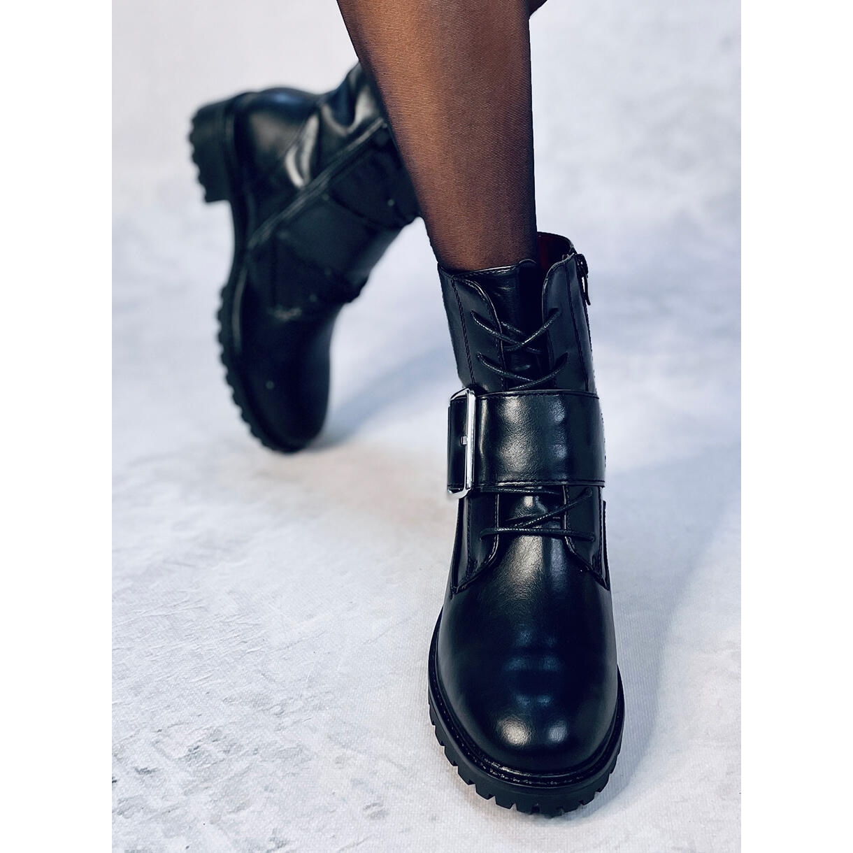 Šněrovací kotníkové boty Billy Black jsou dámské černé boty. Vyznačují se klasickým střihem s nápadnou sponou na boku, která jim dodává rockový charakter. Kozačky jsou šněrovací, ale mají i praktický zip na boku, který usnadňuje nazouvání. Jsou vyrobeny z ekologické kůže, navíc podšité jemnou kožešinou, zajišťující teplo a pohodlí.