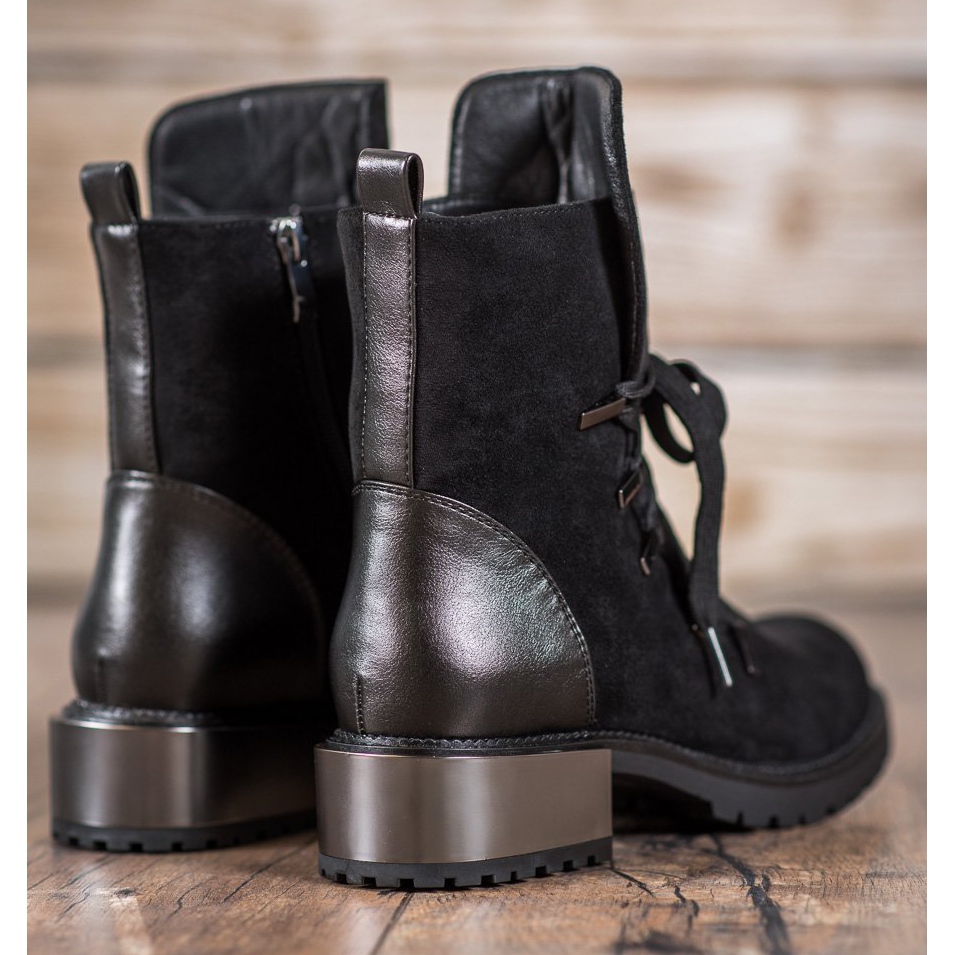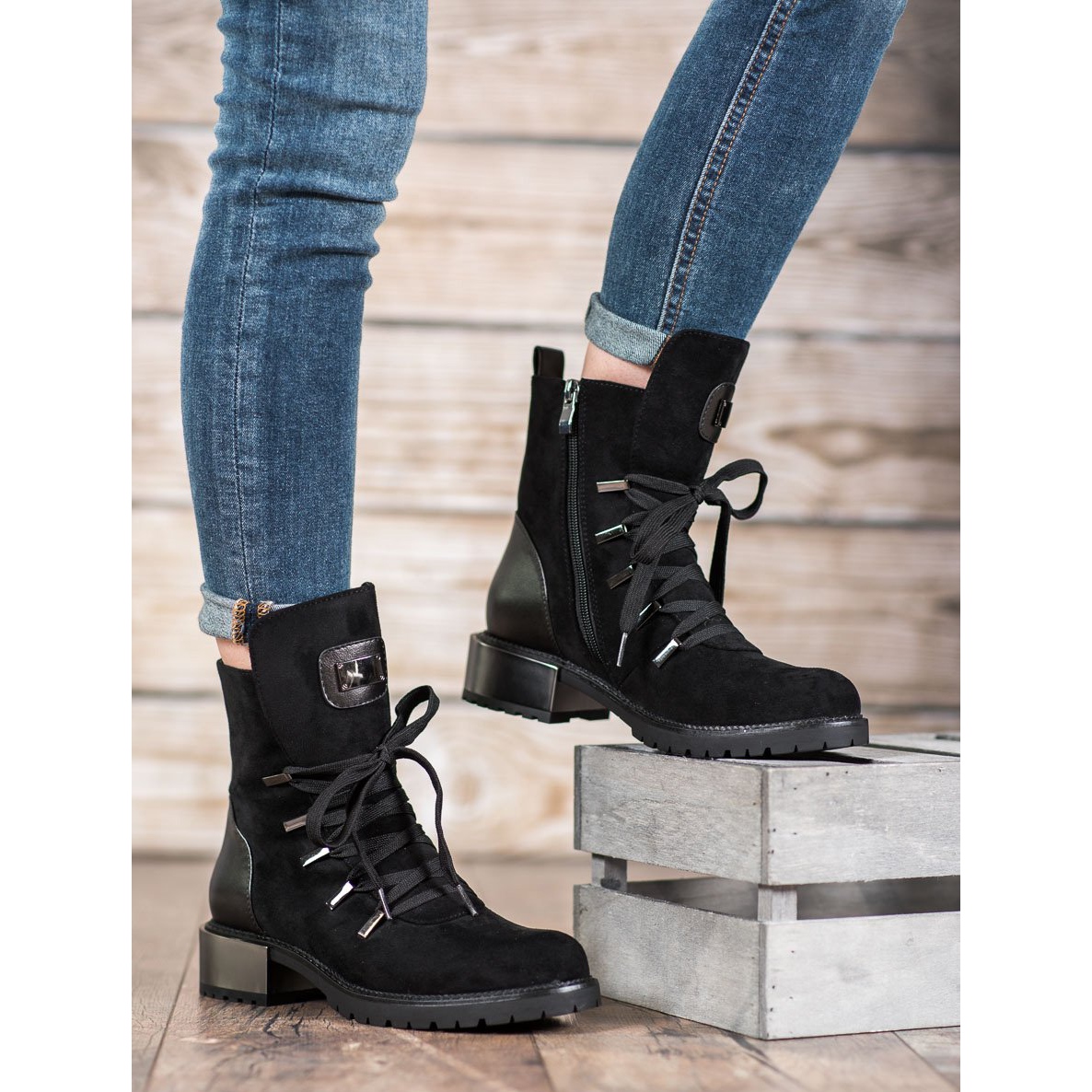 Boty se vyznačují šněrováním, které umožňuje dokonalé přizpůsobení tvaru nohy, což zvyšuje komfort používání. Plochý 4 cm vysoký podpatek a pevná podrážka s nášlapem zajistí stabilitu a bezpečnost při používání a vnitřní zateplení zajistí, že vaše nohy budou vždy v teple.