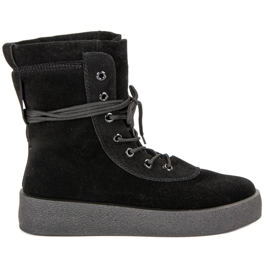 Černé šněrovací kotníkové boty jsou perfektní volbou pro ženy, které hledají pohodlí a styl v nadcházející podzimní a zimní sezóně. Tyto neformální boty vyrobené z vysoce kvalitního ekologického semiše spojují eleganci s funkčností. Vyztužená pata a hladká gumová podrážka zajistí stabilitu a pohodlí při každodenním nošení.