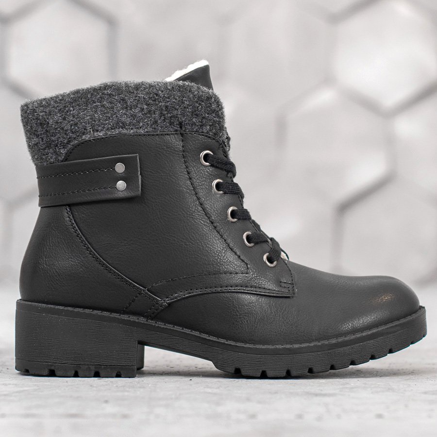 **J Hvězdné šněrovací kotníkové boty černé – módní volba na podzim a zimu**