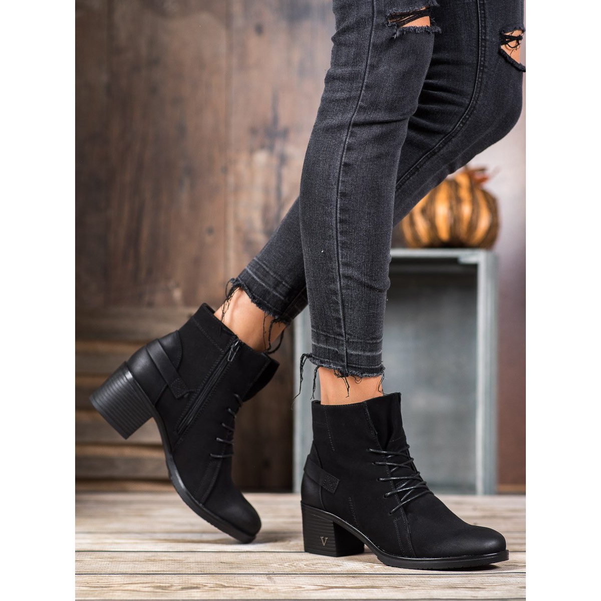 Objevte eleganci a pohodlí v jakémkoli stylu s černými šněrovacími kotníčkovými botami VINCEZA. Tyto minimalistické, a přesto jedinečné boty dokonale odpovídají nejnovějším trendům a splňují očekávání i těch nejnáročnějších milovníků módy.