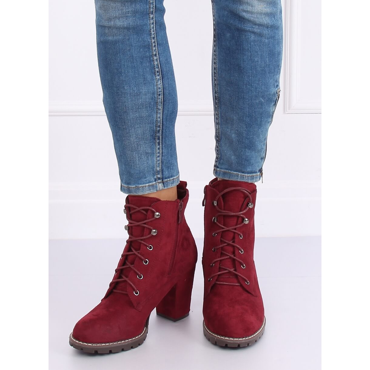 Podrobnosti: Šněrovací boty na vysokém podpatku 7081 Wine červené