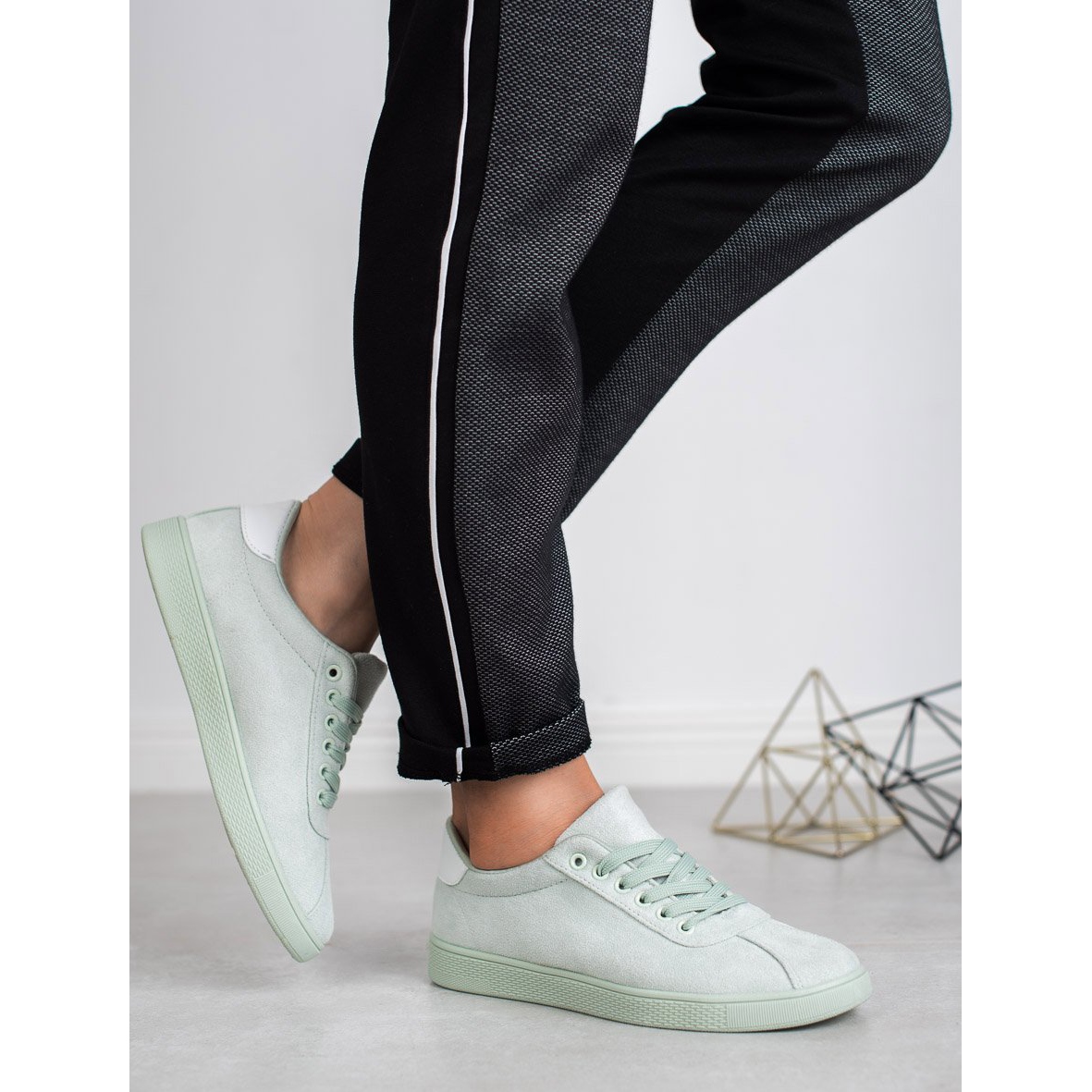 Objevte novou dimenzi pohodlí a stylu s mátovými šněrovacími botami od Ideal Shoes. Tyto elegantní tenisky vyrobené z vysoce kvalitního materiálu imitujícího semiš spojují módní design a pohodlí nošení, ideální pro každodenní nošení. Díky ploché gumové podrážce o tloušťce 2 cm se budou vaše nohy cítit lehce a v pohodě, bez ohledu na příležitost.