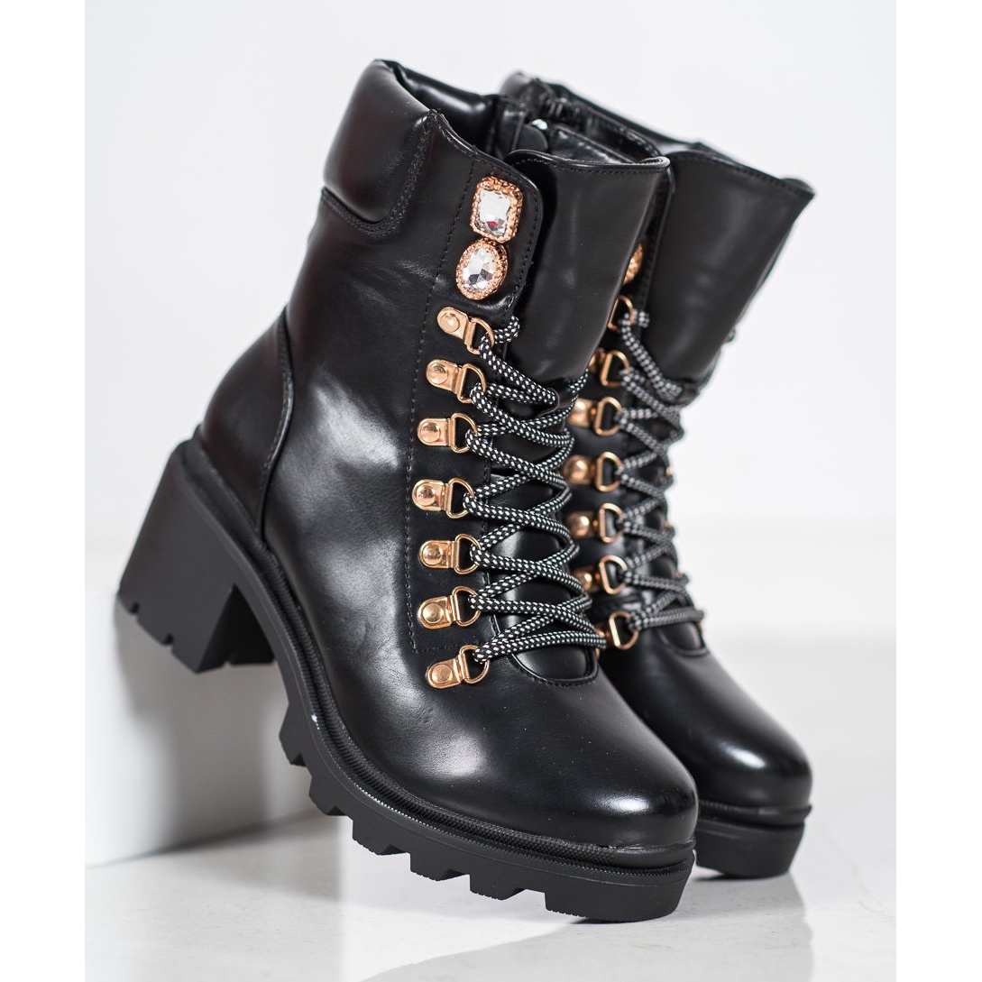 **Šněrovací kotníkové boty na vysokém podpatku Seastar v černé barvě**