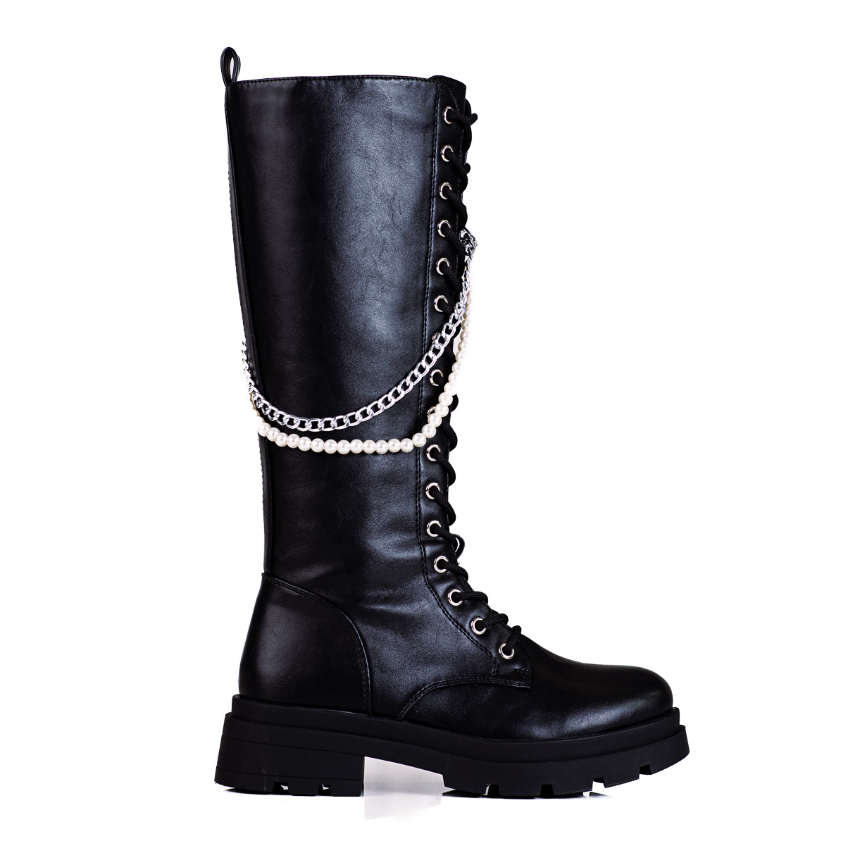 Podrobnosti: Šněrovací kozačky pro ženy s perlami Shelovet černý