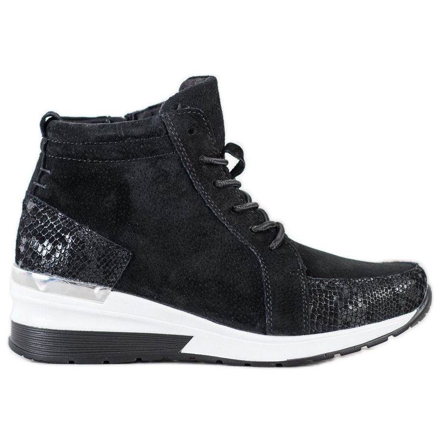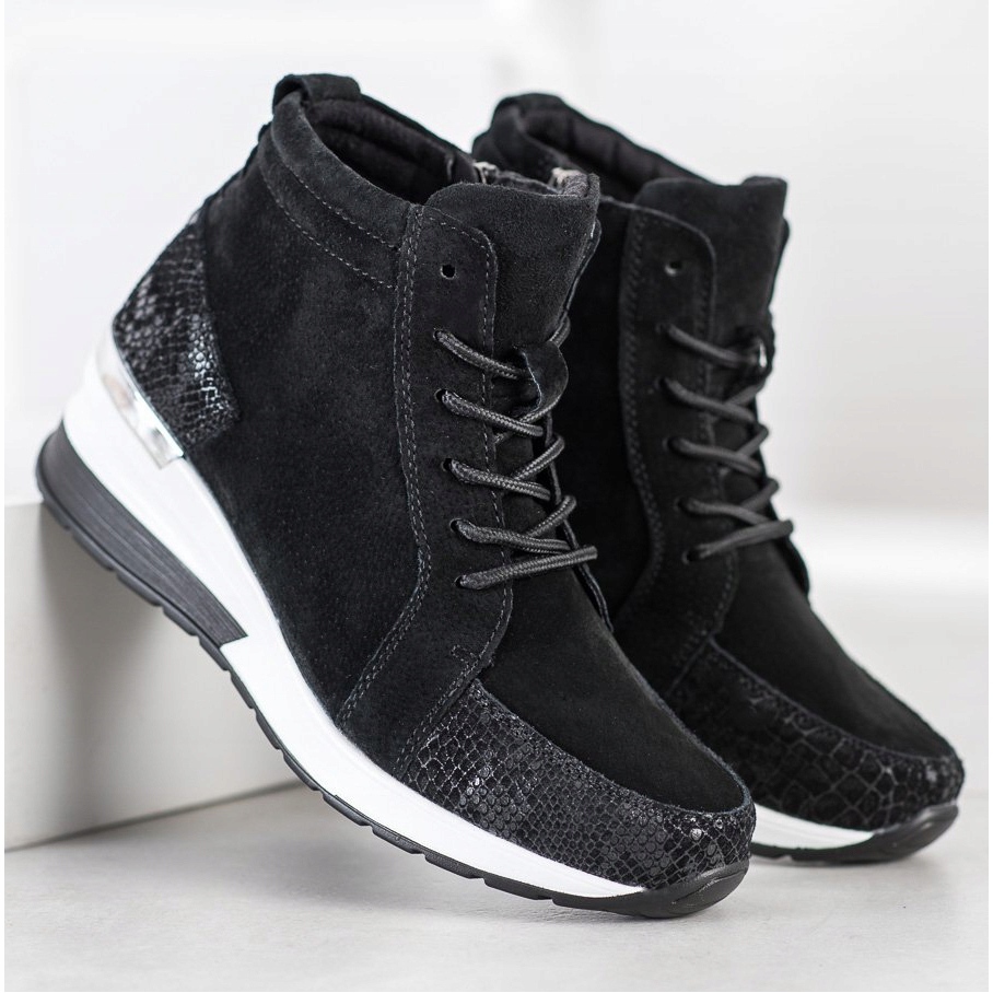 Materiál podrážky z plastu s nášlapem zajišťuje stabilitu a dobrou přilnavost, což z nich dělá ideální volbu pro každodenní použití. Interiér bot byl navržen s ohledem na pohodlí - kombinace přírodní kůže a imitace kůže poskytuje příjemný zážitek z nošení.