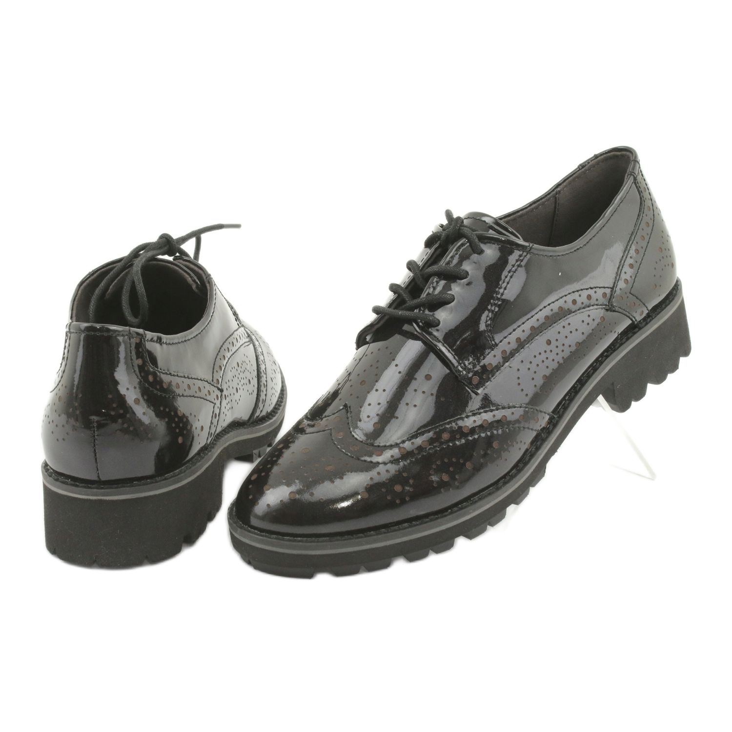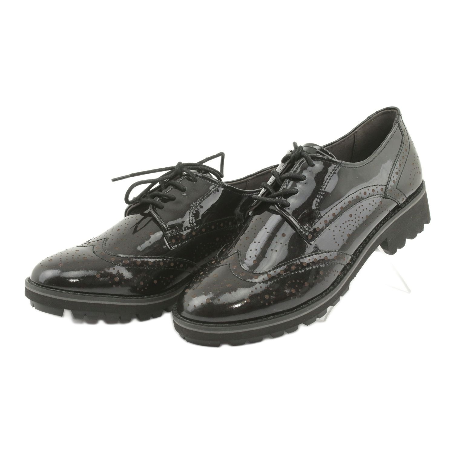 Černý lakovaný povrch s jemnými, svítícími částicemi jim dodává jedinečný charakter, díky čemuž jsou ideální pro různé styly – od ležérních až po elegantnější. Další výhodou je měkká kožená stélka, která zaručí pocit pohodlí i při dlouhodobém používání.