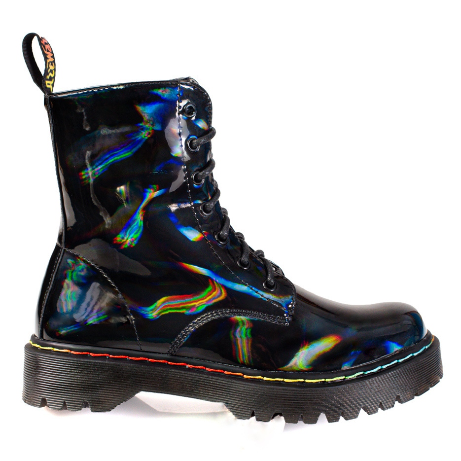 - Kombinace módního lesku a pohodlného designu způsobuje, že boty se hodí jak každodenních stylizací, tak odvážnější, skalní sady.