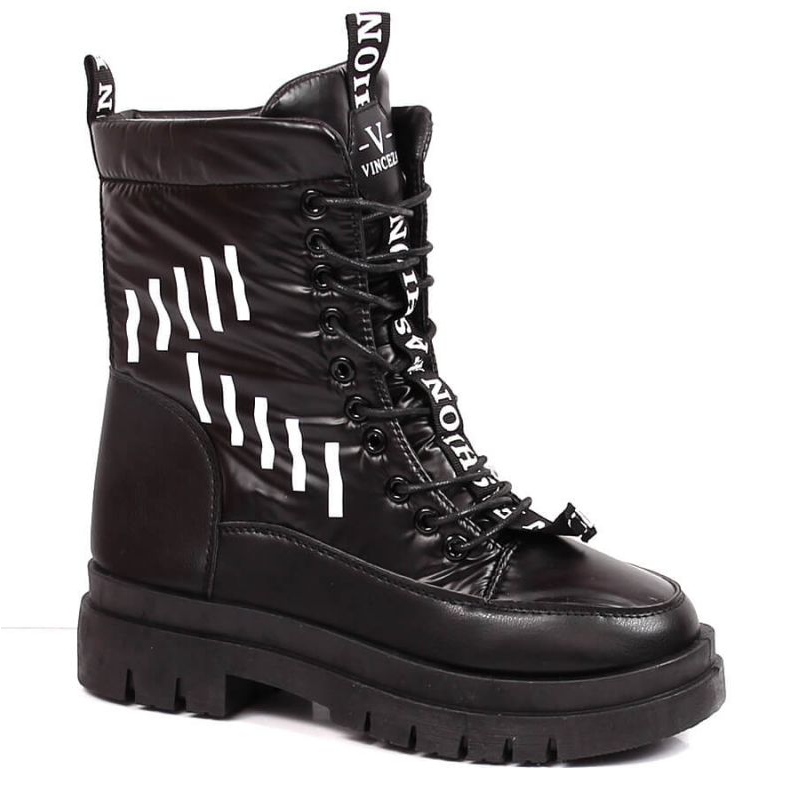 Šněrovací sněhule na platformě Vinceza W JAN167 černý