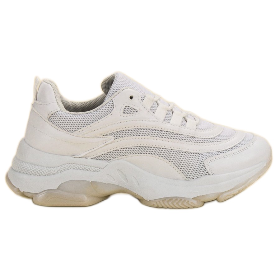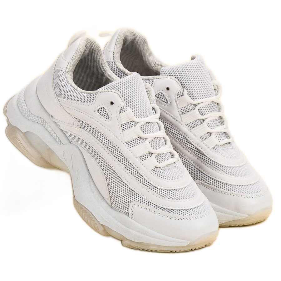 Bílá šněrovací sportovní obuv je vyrobena z kvalitních materiálů - svrchní materiál je moderní materiál, látková stélka zajišťuje dostatečné pohodlí a ventilaci. Kulatá špička nejen zdůrazňuje jejich ležérní vzhled, ale také dodává volnost prstům.