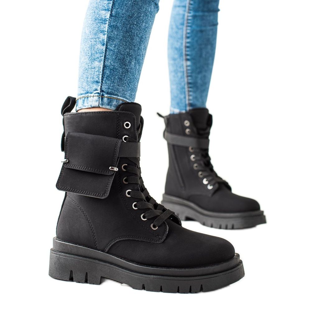 TRENDI Šněrovací trapézové boty s kapsou černý