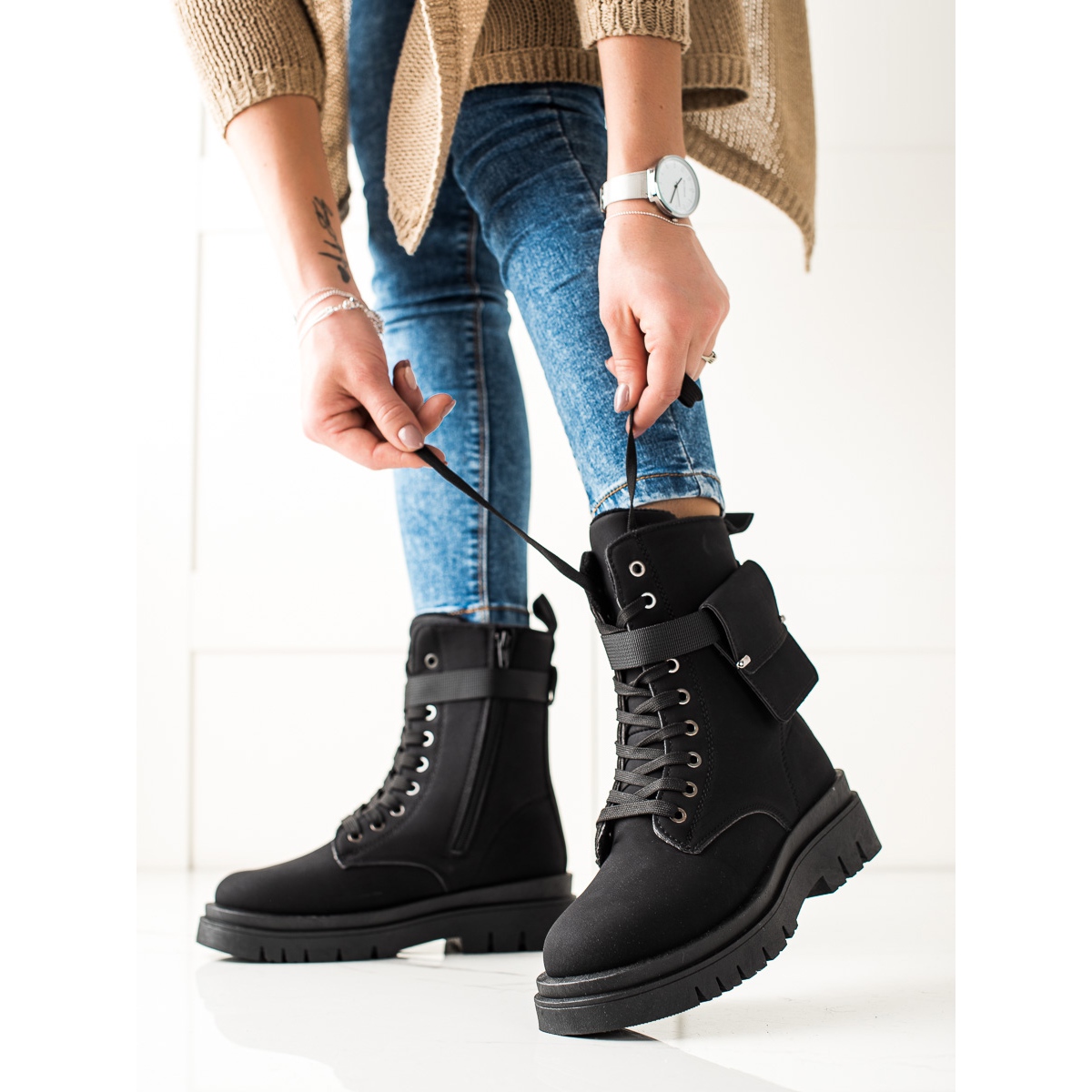 Co odlišuje model TRENDI? V první řadě praktická kapsa, kterou lze snadno odepnout a pevná podrážka s nášlapem, která zaručí dobrou přilnavost na různých površích. Zip a šněrování umožňují snadné přizpůsobení noze a díky výšce podpatku 5 cm jsou boty pohodlné i při dlouhých procházkách.