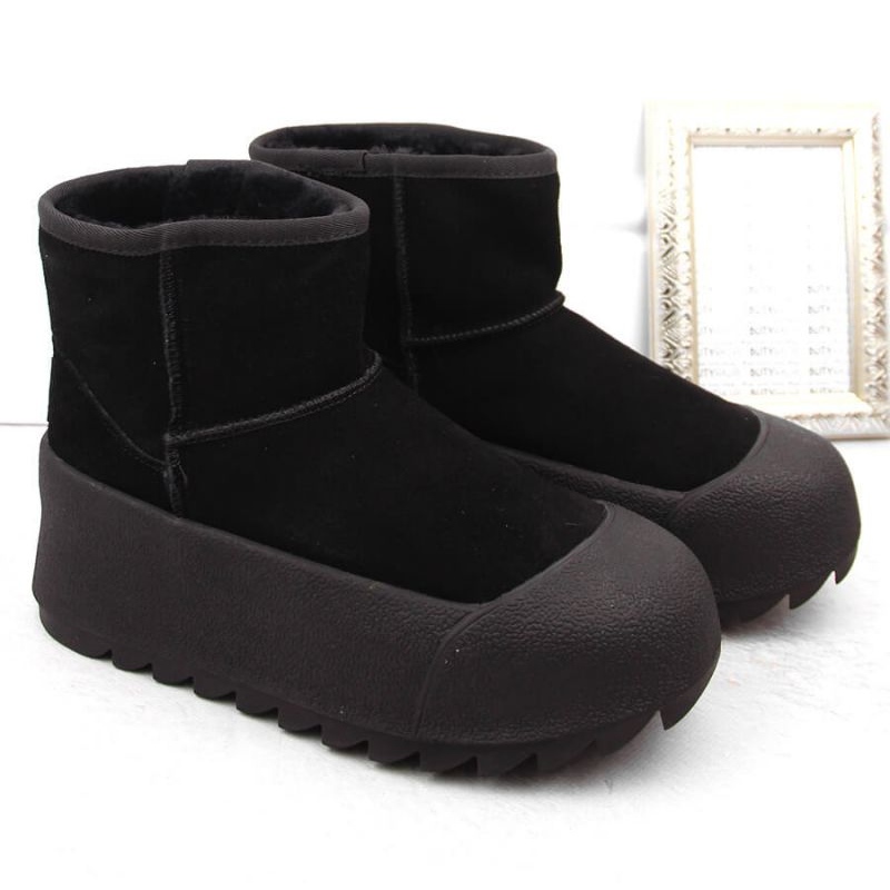 Snow Boots on the Big Star in Int2023A Platform in Black je perfektní volbou pro ženy, které si cení módního designu a pohodlí v zimních dnech. Tyto boty jsou vyrobeny z vysoce kvalitního semišového přírodního kůže a vyznačují se pevnou, silnou podrážkou, která účinně izoluje od chladu a zároveň zajišťuje dobrou adhezi na kluzkých površích.