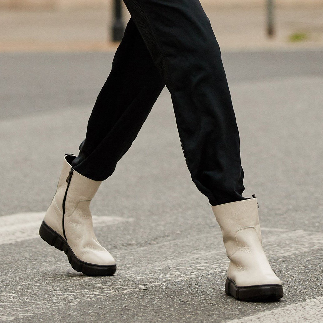 Esteticky jsou bílé kotníkové boty univerzální, hodí se jak k ležérním džínům, tak ke sportovnějšímu šatníku. Nemají dominantní vzor, díky čemuž se snadno upravují k nejrůznějším oděvům. Boty se zapínají na zip, díky kterému se snadno nazouvají i vyzouvají.