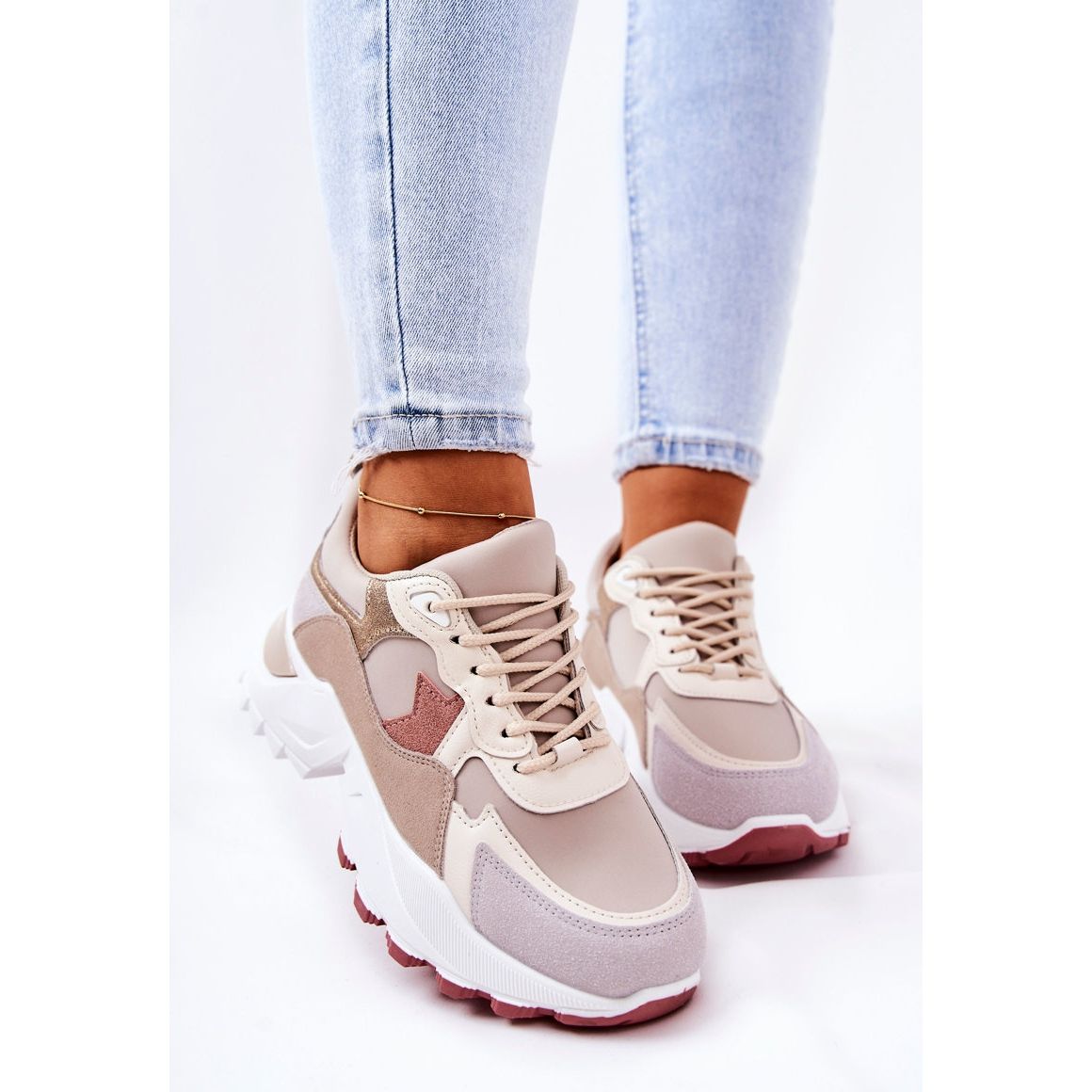 Inna marka Sportovní Boty Na Béžově Růžové Platformě Berenice béžový