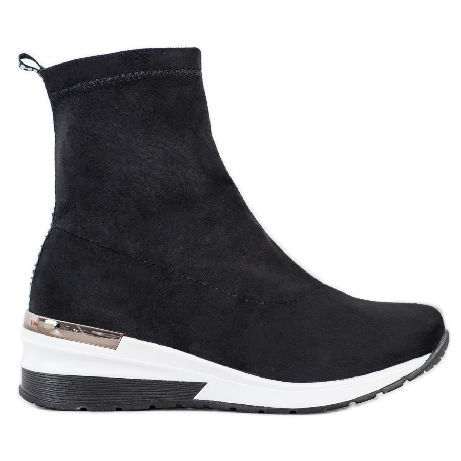 Tyto černé kotníkové boty byly navrženy s ohledem na aktivní životní styl. Vyrobeny z ekologické semišové kůže nejen efektně vypadají, ale také poskytují dostatečné odvětrávání. Měkká, zabudovaná pata obepíná chodidlo, díky čemuž je obuv extrémně pohodlná a každodenní nošení je potěšením.