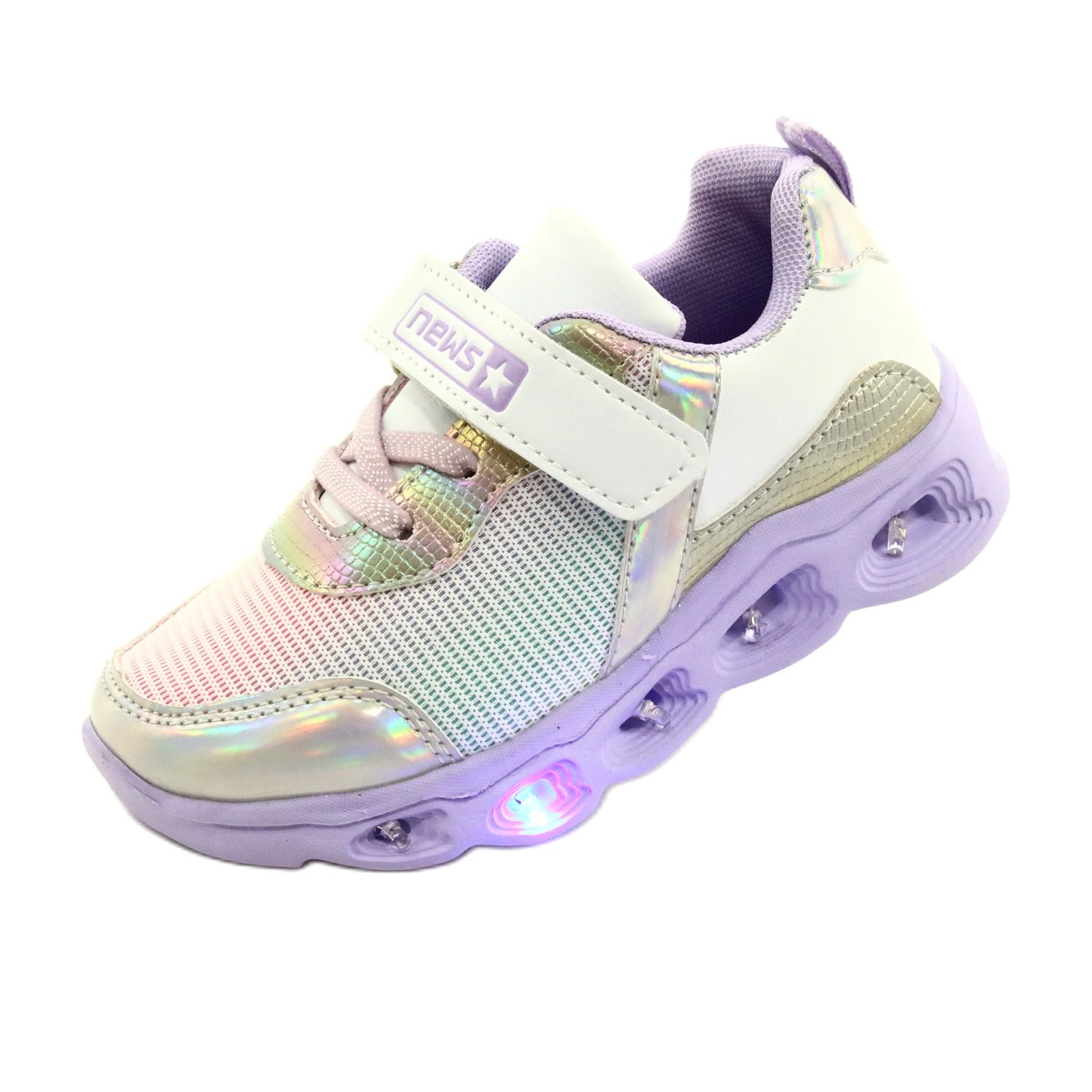 NEWS NEWS Sportovní obuv ADI LED zářící suchý zip Novinky 22DZ32-4837 Lilac-White fialový růžový stříbrný