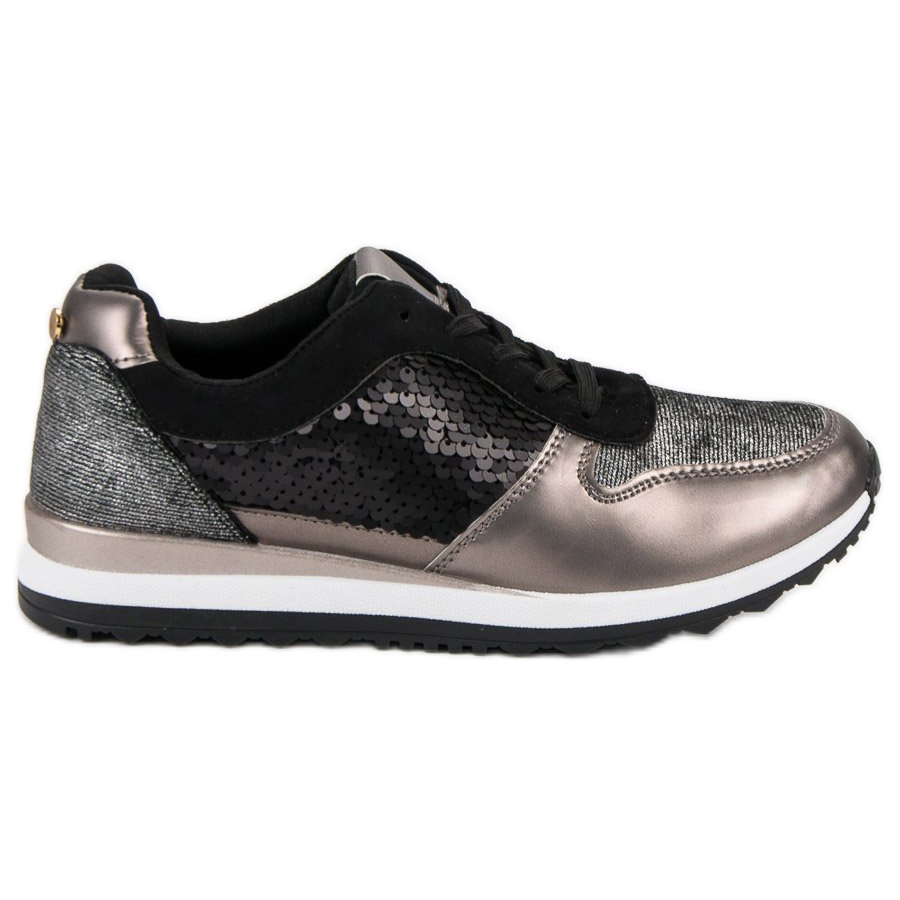 Sportovní obuv s flitry černý šedá žluť