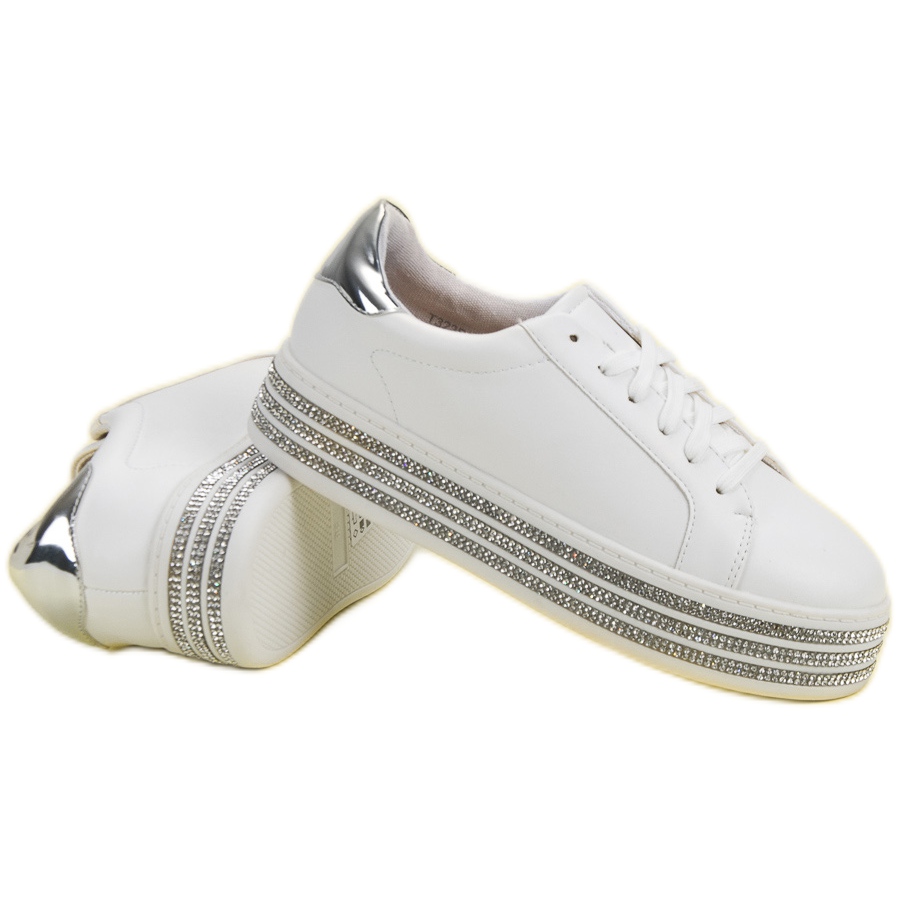 Dodejte svému šatníku šmrnc s jedinečnými bílými sportovními botami s krystaly. Klasický design těchto bot získává moderní nádech díky elegantním stříbrným akcentům a velkolepým krystalům, které obklopují podrážku. To je perfektní volba pro ženy, které chtějí kombinovat módu s pohodlím.
