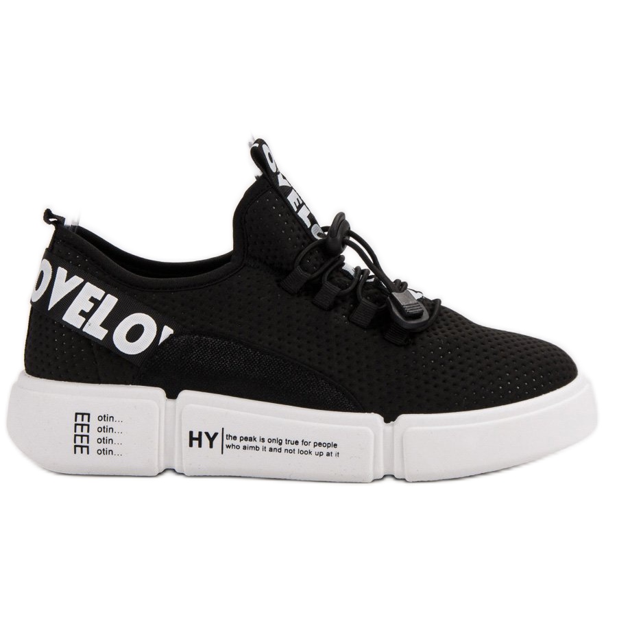 Love Sports Shoes with Cuff v černé barvě nesmí chybět v šatníku každé módní ženy. Tyto designové sportovní boty kombinují funkčnost a jedinečný styl, díky čemuž jsou perfektní volbou pro každodenní použití. Tento model se vyznačuje velkým nápisem LOVE na manžetě, který přitahuje pozornost a dodává charakter každému stylingu.