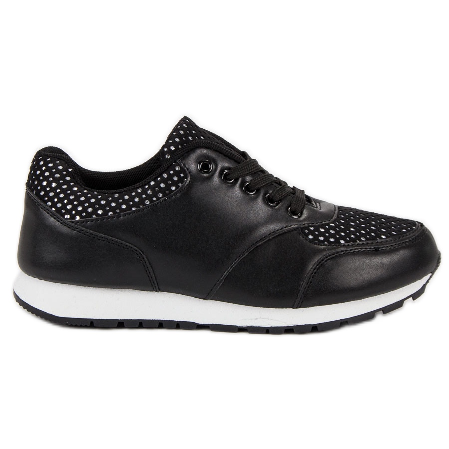 Černé sportovní boty s pověstnou kulatou špičkou jsou perfektní volbou na jaro a léto, stejně jako na podzim a zimu. Zapínání na tkaničky umožňuje přesné přizpůsobení chodidlu, což zvyšuje stabilitu při pohybu. Díky neutrální barvě a jednoduchému vzoru se tyto boty hodí do každého šatníku.