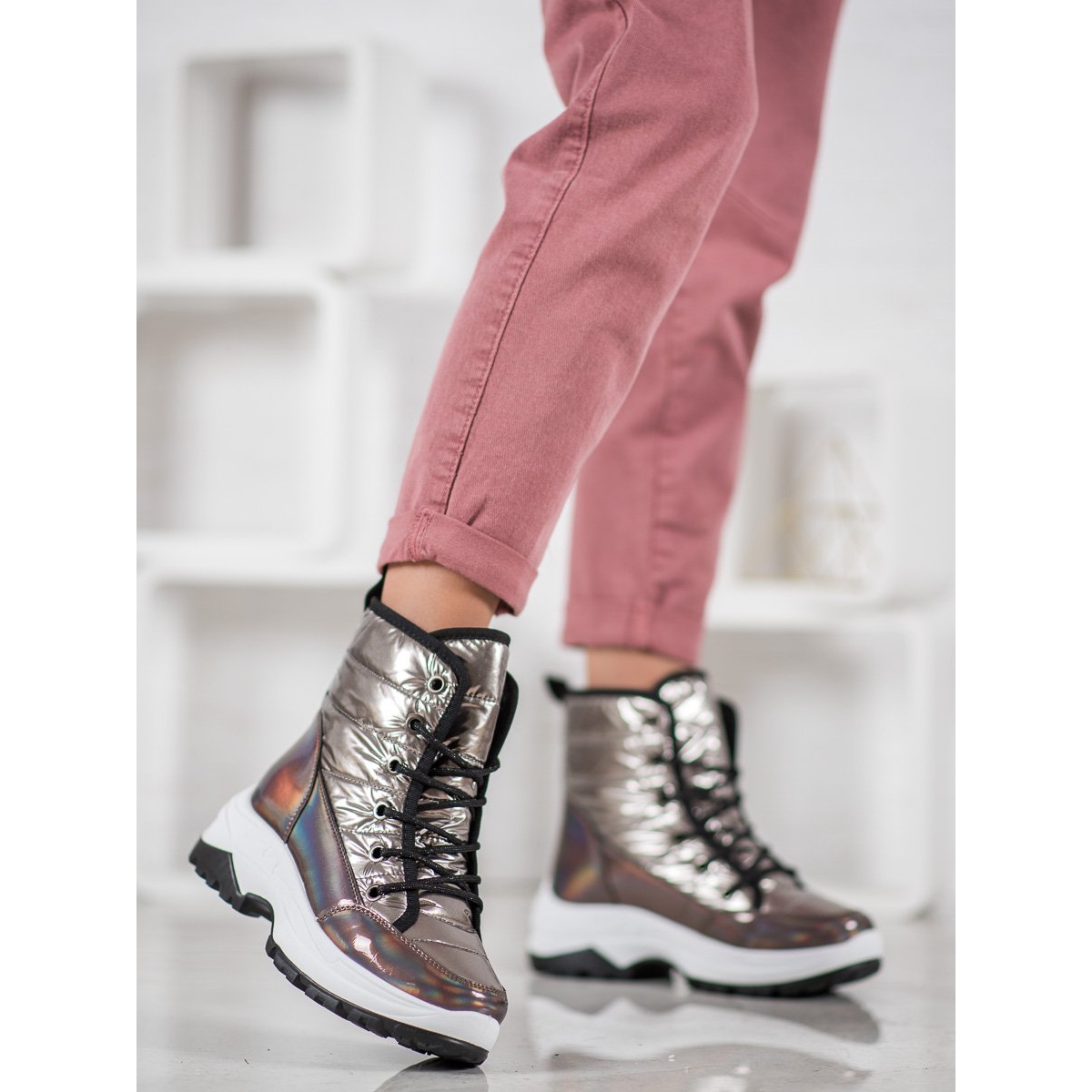 Vysoké boty do sněhu jsou nejen atraktivní, ale také extrémně pohodlné a poskytují dostatečnou izolaci v chladnějších dnech. Jejich uzavřená měkká pata a zapínání na šněrování umožňují dokonalé padnutí, což zvyšuje úroveň pohodlí při používání. Horní šířka 28-30 cm umožňuje snadný nákup pro různé siluety.