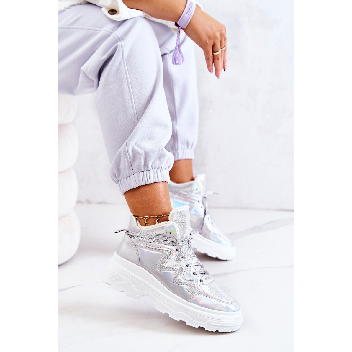 Moderní, vysoká sportovní bota Joenne kombinuje módní, kovový lesk s praktickými izolačními vlastnostmi. Silná, masivní podešví a měkká srst uvnitř poskytuje teplo a pohodlí během chladnějších dnů a univerzální stříbrná barva přidá k mnoha stylizacím charakter.