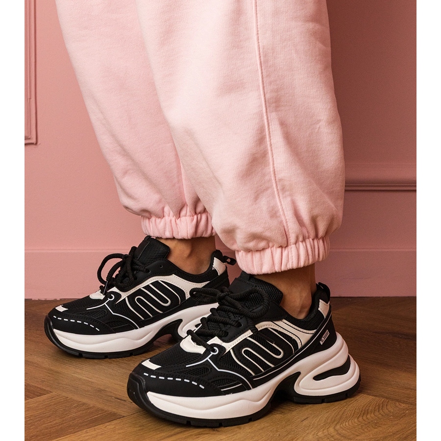 Sjednotná černá barva způsobuje, že tyto tenisky jsou velmi univerzální - dobře se mísí s různými stylizacemi, od sportu po příležitostné. Vysoká platforma od 6 cm zaručuje další podporu a stabilitu a zároveň přidává k každému kroku jemnou eleganci. Kulatý nos poskytuje pohodlí a vložená spona vám umožňuje rychle nasadit a sundat boty, které bude ocenit každá zaneprázdněná žena.