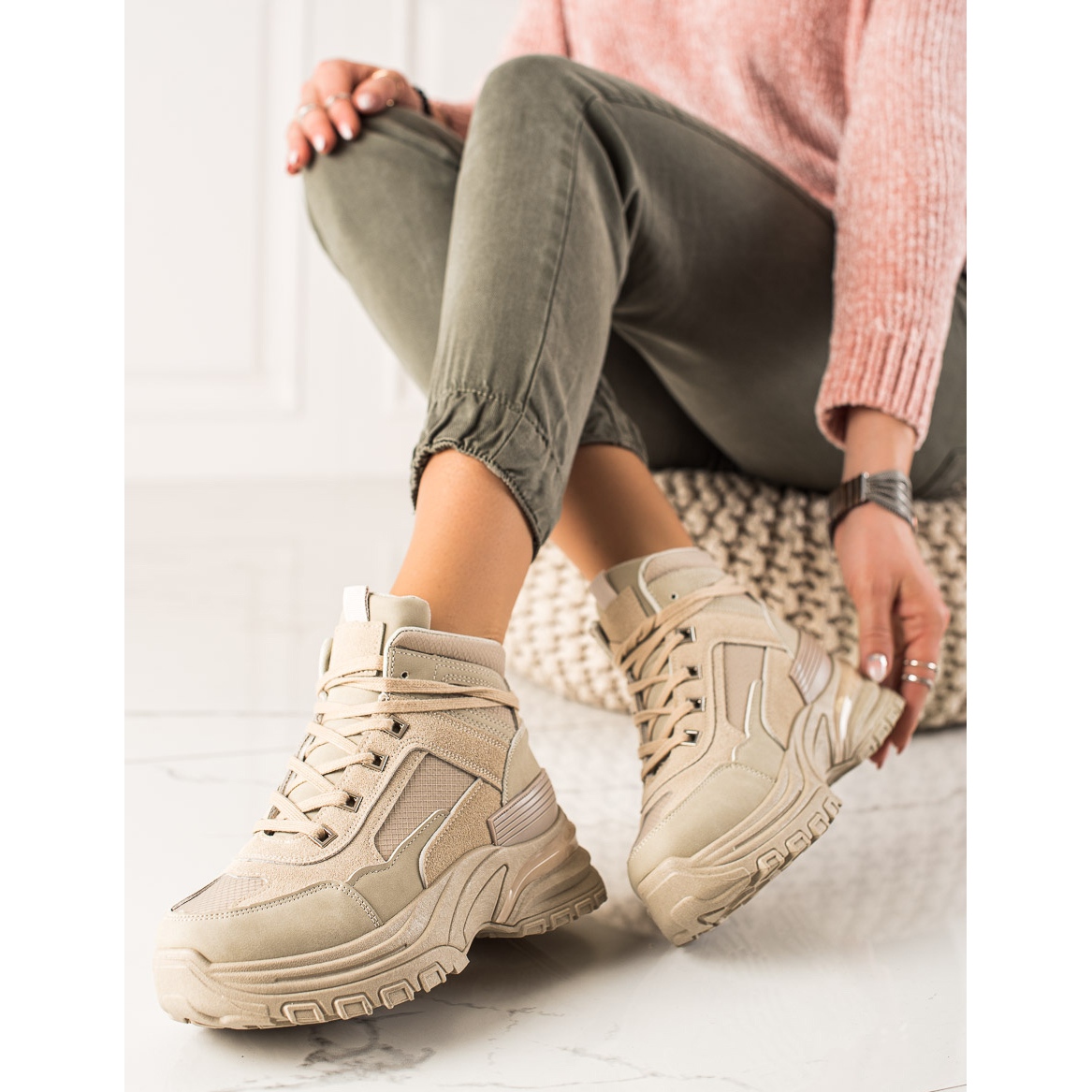 Objevte pohodlí a styl s vysokými sportovními teniskami Sweet Shoes v béžové barvě. Ideální pro moderní ženy, které oceňují jak módní vzhled, tak každodenní pohodlí. Tyto boty vyrobené z 50% imitace kůže a 50% imitace semiše dokonale spojují eleganci a praktičnost.
