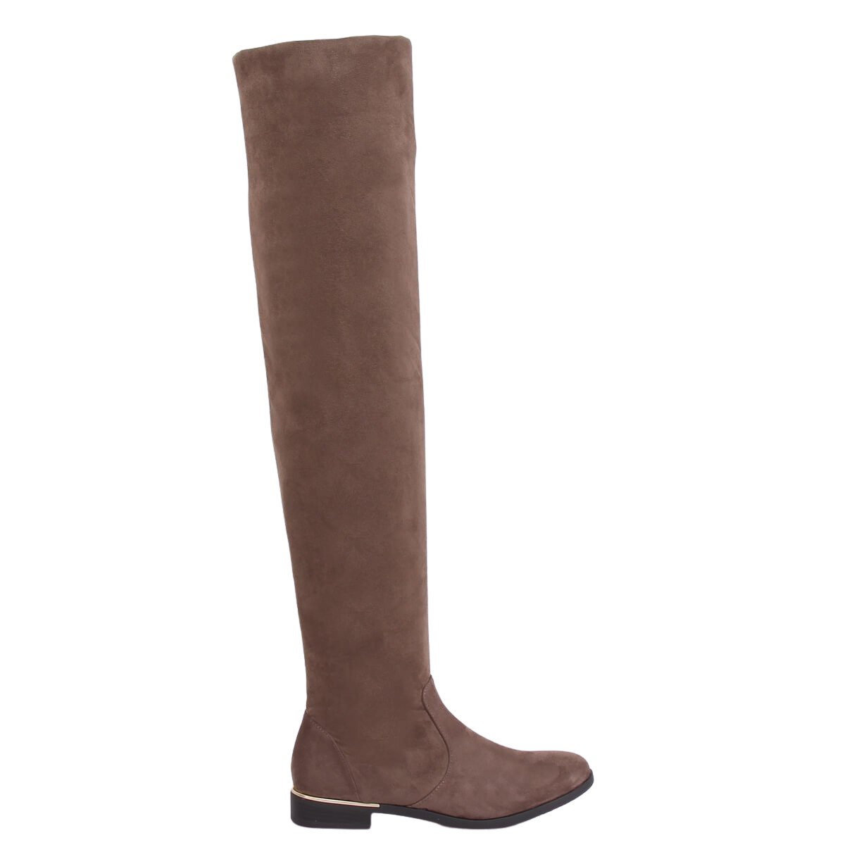 Inna marka Kozačky nad kolena s plochými podpatky béžové 0-76 Kaki béžový